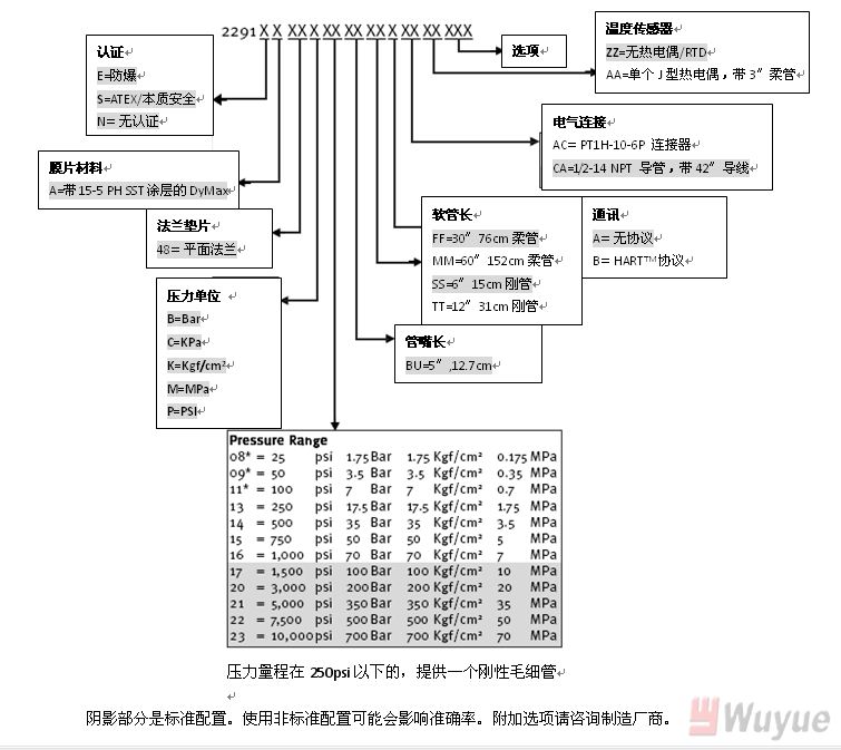 特征 ★ 通過“Z971”選項改進的線性產品 ★ HARTTM數字通訊系統 ★ 4-20mA 環路供電輸出 ★ 0-25到0-10,000psi ★ 防爆,ATEX/本質安全認證 ★ 符合PED和CE要求 優點 ★ 線性改進80% ★ 能通過手持式裝置配置 ★ 直接提供輸出給DCS或PLC ★ 由客戶定義壓力量程 ★ 已認證無環境污染 ★ 符合新的EC要求 產品描述 SPX-L產品是一個智能的4-20mA按鈕密封式壓力傳感器,能在環境惡劣的地方使用。SPX2291是全焊接結構,具有一個較大的膜片和一個法蘭墊片,便于輕松安裝。可選用熱電偶或RTD測量熔體溫度。SPX2291E適用于1級,1區,A,B,C&D組的危險區。防爆模式采用帶有42’’導線的管道配置。SPX2291S有ATEX/本質安全‖1Gooa Eex ia ‖C, 0和1區的認證。SPX-L同樣包括一個新的Dynisco 先進模塊,DynalarityTM,一個使由材料和加工變化引起的偏移線性化的高級運算法則模塊。 SPX-L2291高溫熔體壓力傳感器(high temperature melt pressure sensor)